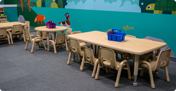 Our classrooms create warm, welcoming, and developmentally supportive spaces. Each room is designed with intention, ensuring children feel comfortable while being gently challenged to grow.